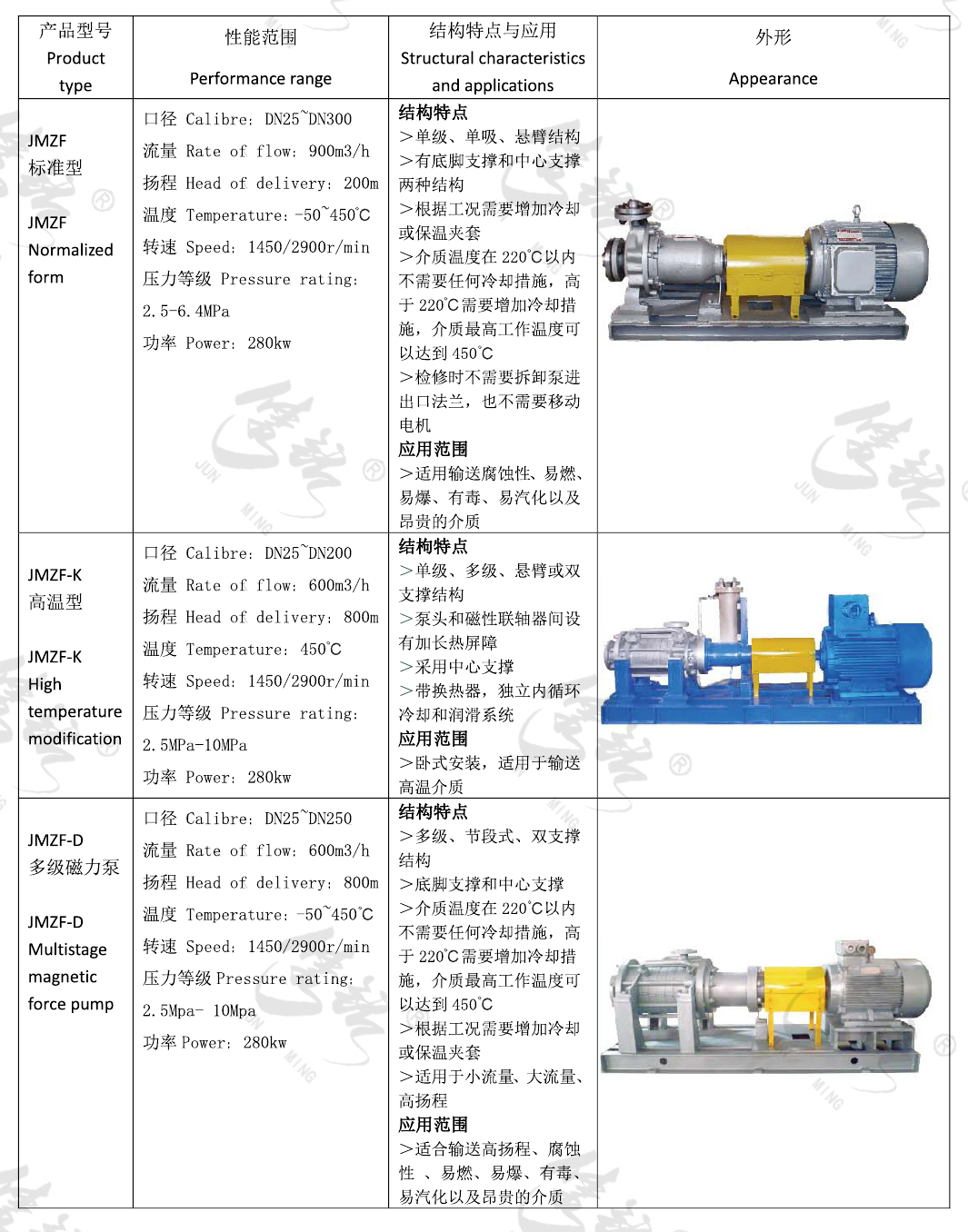 JM系列磁力驅(qū)動(dòng)離心泵一種高效節(jié)能無(wú)泄漏離心泵, 在節(jié)能環(huán)保方面擁有巨大優(yōu)勢(shì)。符合API610標(biāo)準(zhǔn)API685部分標(biāo)準(zhǔn),與國(guó)內(nèi)石化、電力等企業(yè)現(xiàn)有設(shè)備兼容,可進(jìn)行完全的互換。