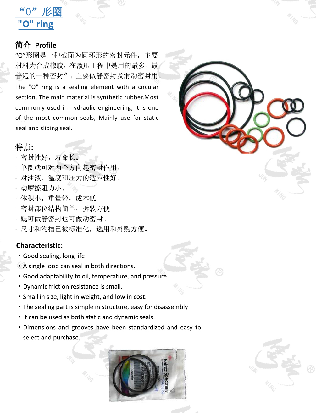 “O”形圈是一種截面為圓環(huán)形的密封元件,主要材料為合成橡膠,在液壓工程中是用的最多、最普遍的一種密封件,主要做靜密封及滑動密封用。